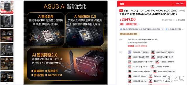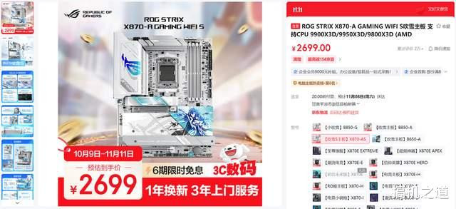 不在意配色的,可以上华硕 TUF GAMING X870E-PLUS WIFI7,该主板做工同样扎实,功能也十分强大,16+2+1的供电设计能够为R9 9950X3D级别的旗舰级处理器提供澎湃电力保障;主板还采用了先进的人性化易拆设计,玩家拆装显卡、M.2 SSD及WIFI天线更加方便。目前该主板售价仅为2349元,能够进一步降低装机预算。