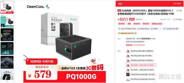 电源推荐九州风神 黄金统治者 PQ1000G,该电源通过了80Plus金牌认证,支持最新的ATX3.1规范,电源的做工也非常扎实,采用了日系主电容和高品质压纹模组线,还提供了长达10年的超长质保,同时其售价仅为500元出头,性价比非常出色。