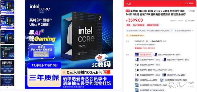 虽然Intel 酷睿 Ultra 9 285K的游戏性能确实比不过同价位的X3D处理器,但毕竟其核心数更多一些,在生产力方面的优势还是很大的,加之近期Ultra200S开启了一波降价模式,Ultra 9 285K降完价后更是来到了3000元出头,性价比顿时拉满。