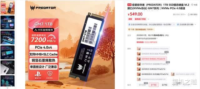SSD虽然也涨价了,好在没内存那么离谱,这里推荐的宏碁掠夺者 GM7 1TB比起之前也就贵了100多,尚能接受,在意价格的玩家先买个1TB用着吧,等回头SSD降价了再扩充容量。