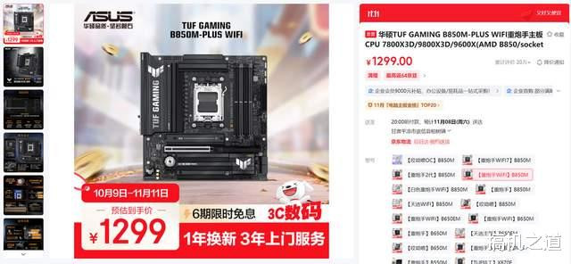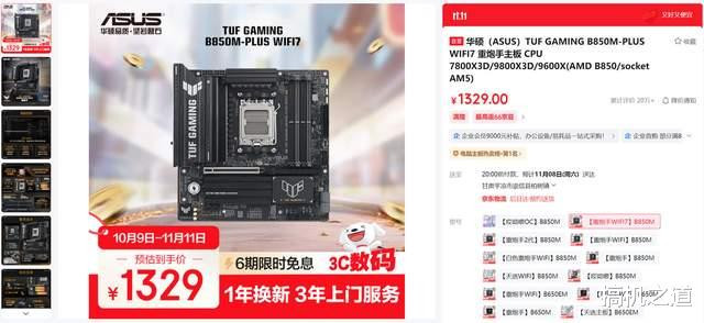 另外华硕 TUF GAMING B850M-PLUS WIFI7 重炮手也是很不错的,相较华硕TUF GAMING B850M-PLUS WIFI重炮手,网络升级为WIFI7,在电竞游戏中网速更快,延迟更低,而且价格只比前者贵了30元,也就一杯奶茶的钱,个人觉得还是很划算的。