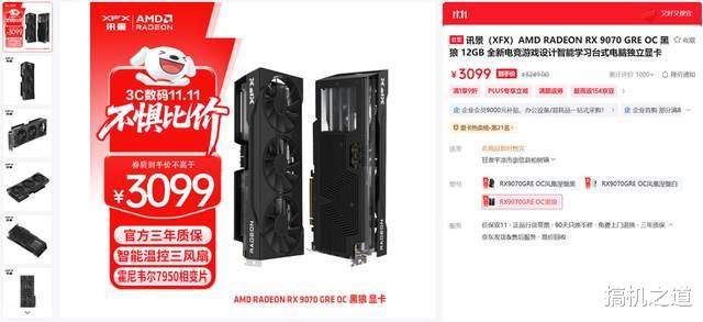 显卡推荐RX 9070 GRE,该显卡采用了新一代RDNA4架构打造而成,拥有3072个流处理器和96个AI加速单元,性能比对手家同价位的RTX 5060 Ti 16GB强24%左右,目前该显卡最便宜的型号为讯景的OC 黑狼版。