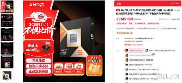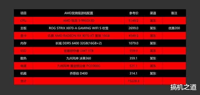 其实上面那套配置有点偏性价比向,如果玩家对性能有更高要求,那么果断上AMD 锐龙 9 9950X3D+ROG STRIX X870-A GAMING WIFI S 吹雪+RX 9070 XT吧,这套配置不仅可以在2160P分辨率下畅玩市面上大多数游戏大作,而且生产力和AI性能也十分不俗。