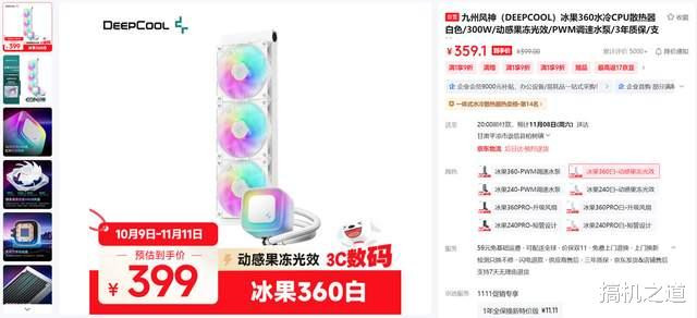 散热器推荐九州风神 冰果360,该散热器冷头加入了独特的动感果冻光效,颜值和灯效非常不俗;水冷采用新一代PWM调速水泵,解热功耗高达300W,能够应付锐龙 9 9950X3D级别的发热量,该散热器售价仅为359.1元,性价比非常高。