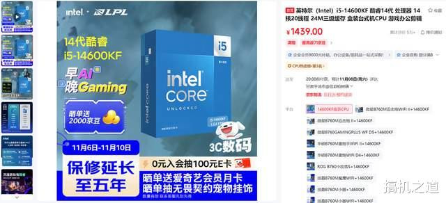 尽管Intel 13、14代爆出了缩肛BUG,但架不住Intel降价较狠,Intel i5-14600KF最低来到过10xx元的价格,目前尽管其价格有所反弹,但个人觉得依然值得购买,不过该U个人不建议买散片,果断买盒装吧,而且Intel还提供了5年延保政策,大家用起来更放心。