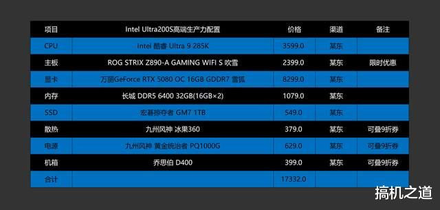 这套配置基于Intel 酷睿 Ultra 9 285K+ROG STRIX Z890-A GAMING WIFI S 吹雪主板+RTX 5080显卡打造而成,既能胜任2016P分辨率高特效下畅玩各类大型游戏,也能胜任各种视频剪辑、图形渲染、AI本地化大模型之类的生产力项目,综合实力非常强悍。