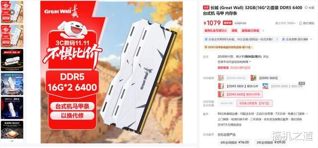 内存给了大家一个过渡性方案,在其他家的16GB×2套条都在1500+的时刻,长城的这对DDR5 6400只需1000出头,算是很良心了。