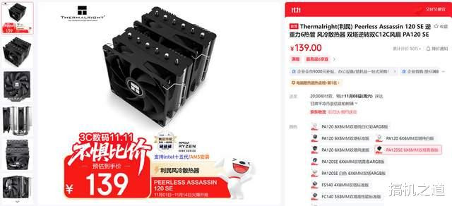 散热器推荐利民 Peerless Assassin 120 SE散热器,该散热器采用6热管双塔设计,最大解热功耗可达265W,压制9700X没啥压力。
