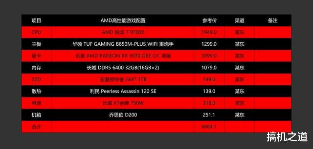 觉得锐龙 7 9700X不够强的,可以将其替换成锐龙 7 9800X3D,这个并没有固定的模式,大家根据自己的钱包来。